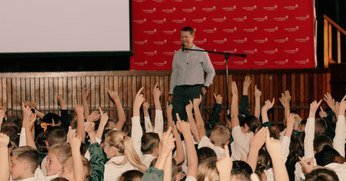 Lig in Duisternis Uitgewers het sy nuutste kinderboek, Die katte van Kathu sit hul dorp oppi mêp, Maandagoggend in Laerskool Garsfontein se skoolsaal bekendgestel.